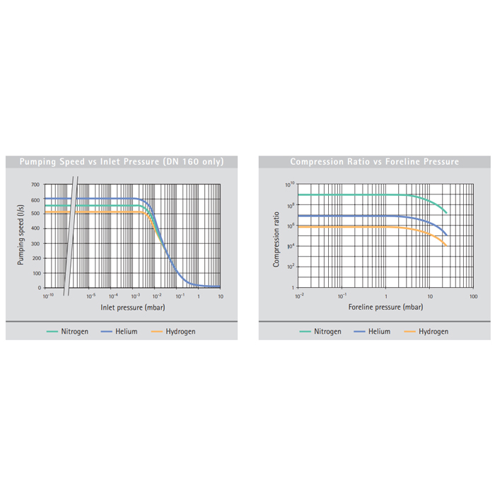 Turbo-V551 consists of a high frequency motor driving a turbine fitted with 8 bladed stages and 4 Macrotorr stages. The turbine rotates in a counterclockwise direction when viewed from the high vacuum flange end.