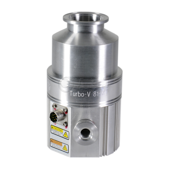The Varian TV 81M Turbo Pump consists of a high frequency motor driving a turbine fitted with 9 bladed stages and 3 Macrotorr stages.