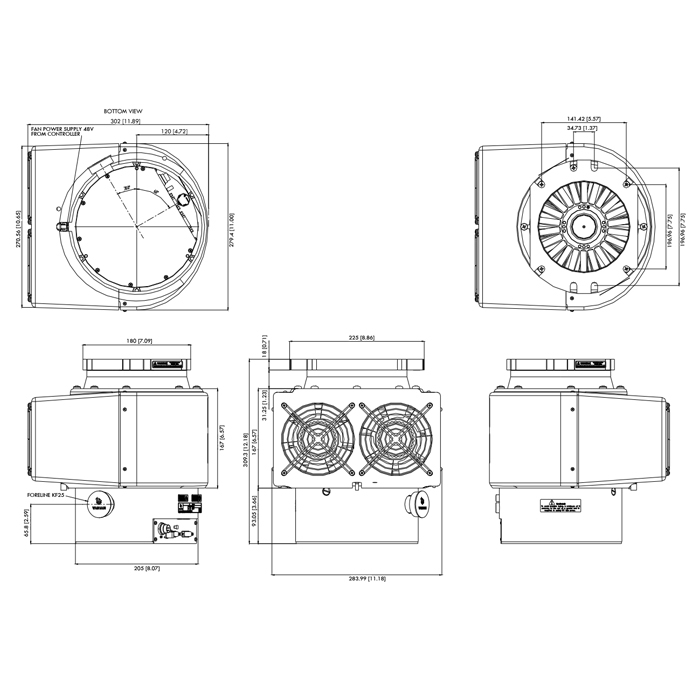 The TV 903 Turbo System Bolted Flange is composed by a pump (869-8811) with an envelope with fins and a shroud with two fans and a dedicated TV903 controller 9696500 (SQ 337). Power supply model 969-6501.