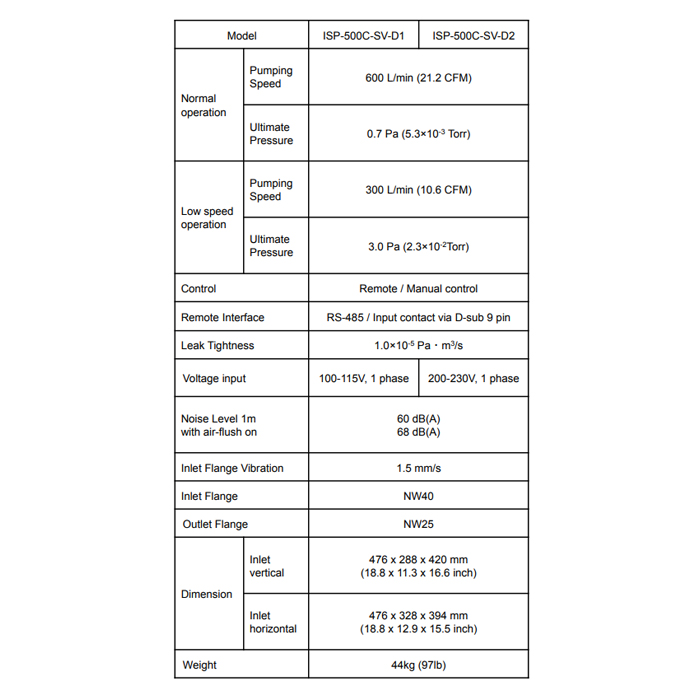 The ISP series vacuum pumps maintain low power consumption from atmosphere to maximum pressure.