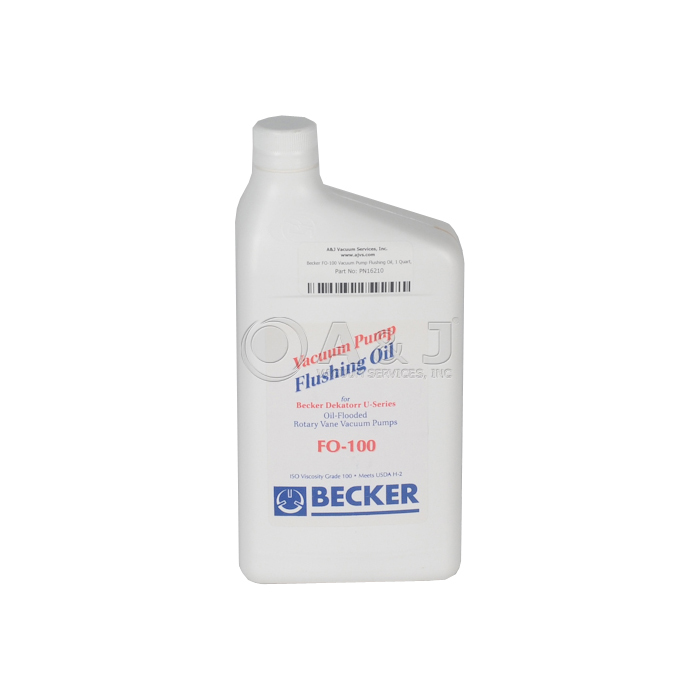 Becker Vacuum Pump Flushing Oil FO-100 is a full synthetic oil intended to clean pumps that have a build-up of deposits that inhibit the performance of the pump. Pumps may be operated up to 500 hours with this oil, while it cleans the deposits.