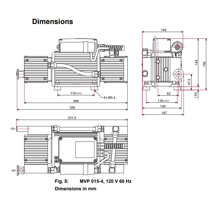 The Pfeiffer MVP diaphragm pump is designed for Pfeiffer Thermostar GSD301 T3 Mass Spectrometer.