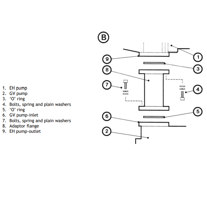 Use a Edwards Connection Kit to connect an Edwards EH mechanical booster pump to a GV dry pump, to form a combination pumping system: refer to the front cover for the Item Numbers of the Connection Kits described in this manual.