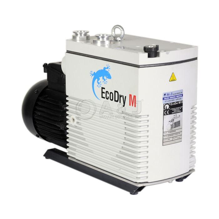 This ECODRY 15 Dry Vacuum has a max pumping speed of 9.4 cfm (60hz) and a ultimate pressure of 1.5 x 10-2 Torr. It has been thoroughly examined and is ready for broad range of applications within the research and industrial industries. The EcoDry M15 Vacuum Pump comes with 3-Month Warranty.