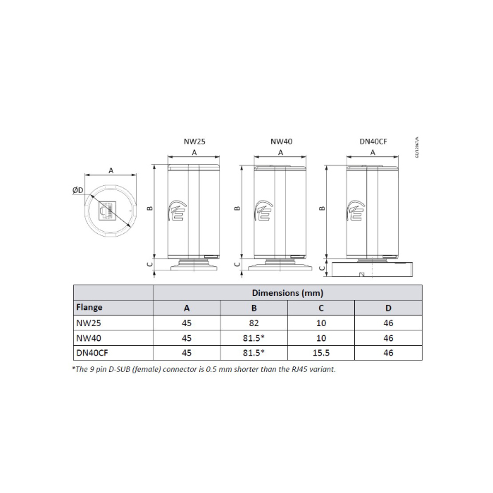 Edwards AIM200 - X Active Inverted Magnetron Gauge, RJ45 (FCC 68) Female Connector, KF25, D2G0021100