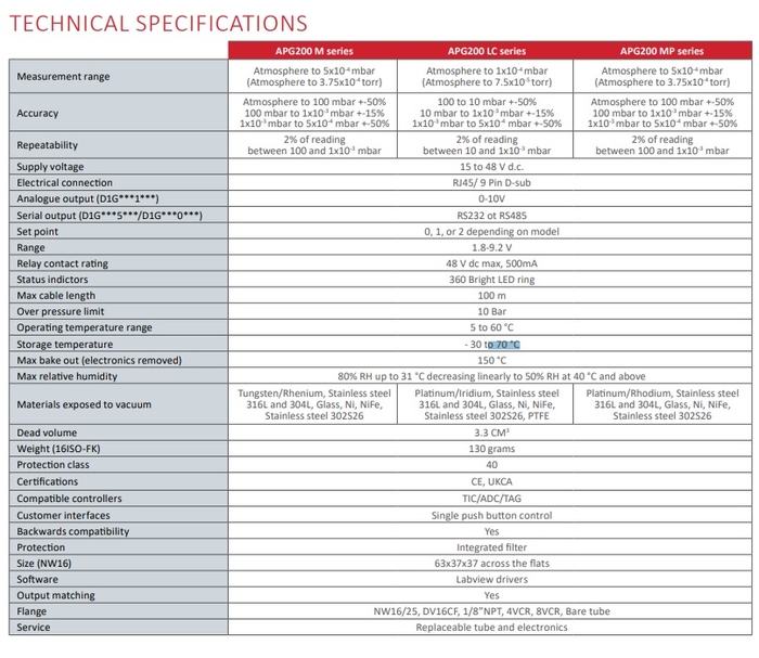The new Edwards APG 200 M is the direct replacement to the APG100-M series. This gauge is a perfect solution across a variety of applications due to compact sizing, the LED light ring, integrated set points, and reduced costs. The APG200 Pirani gauge operates on the principle of thermal conductivity in which the rate of heat loss from a heated filament is dependent on the pressure of the gas (around filament).