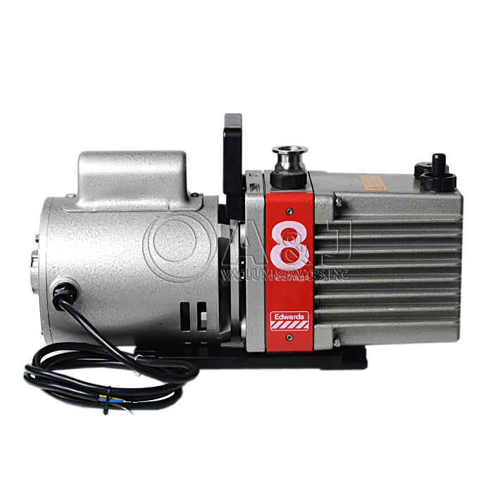 The Edwards E2M8 pumps are oil-sealed and designed for reliable, long-term operation in both laboratory and industrial environments. The pumps are free-standind units. The drive is provided through a flexible coupling by a single-phase or three-phase motor.