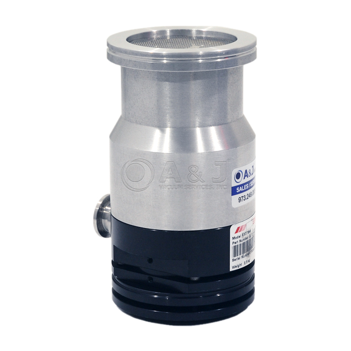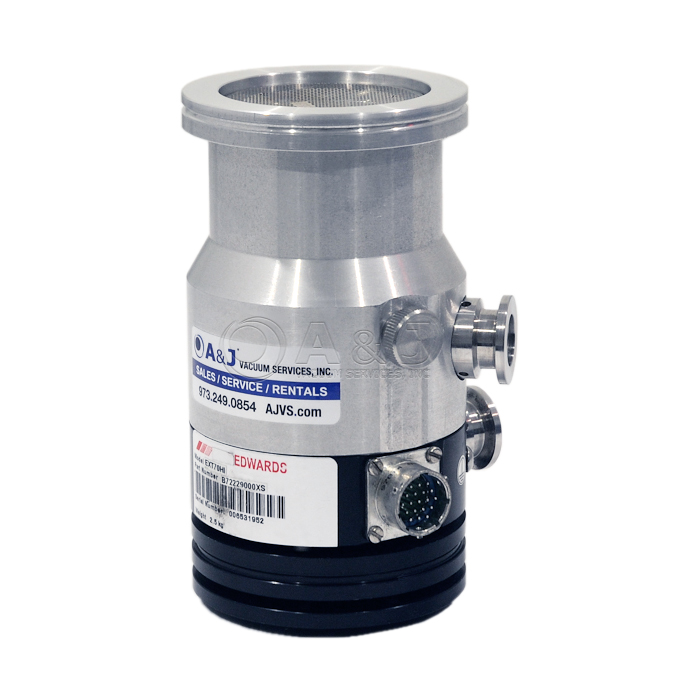 The Edwards EXT70H B72229000, EXT 70 Hi, pumps are compound vacuum pumps that combine a turbomolecular pump and a drag pump on a single shaft.
