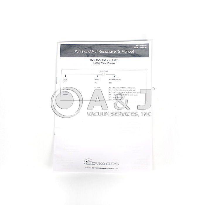 Edwards RV Series Service Instructions with parts diagrams A65201840, RV3, RV5, RV8, RV12 pump parts
