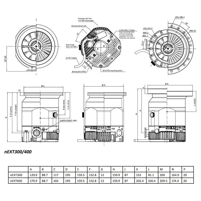Edwards nEXT 300 Pump have a purge-port: an inert purge gas can be introduced protect the bearing and motor from corrosion. An optional vent-port adapter and purge restrictor can be fitted to the purge-port to control the flow rate of the purge gas and to filter the gas supply.