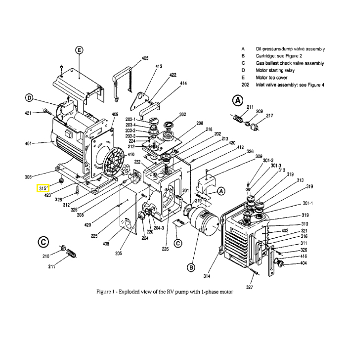 Spare Parts - Parts List for RV Series Rotary Vane Pumps, RV3 RV5 RV8 RV12