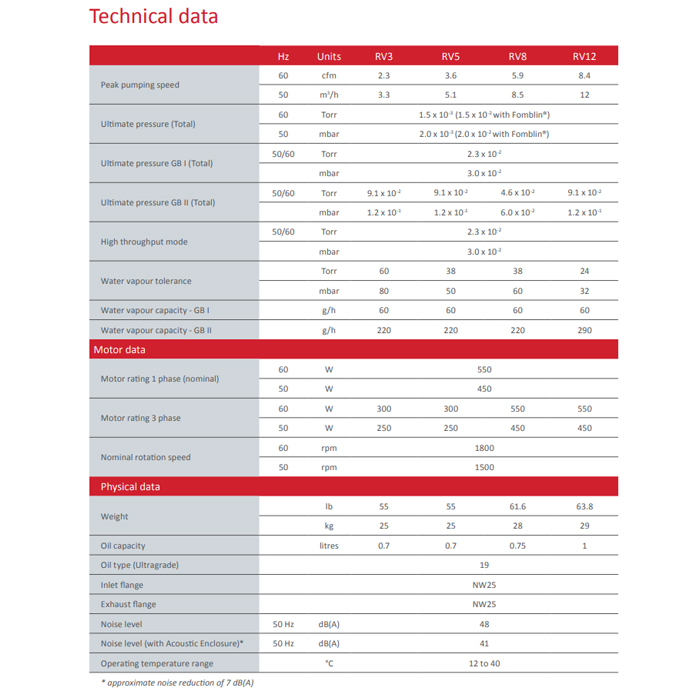 In its high vacuum mode, the Edwards RV8 pump is ideal for analytical instruments, electron microscopes, physics research, backing turbo pumps and leak detection applications. Configure the same pump in the high throughput mode, and it becomes suitable for distillation, laboratory furnaces, backing vapor pumps, solvent concentration, freeze drying and other drying applications.
