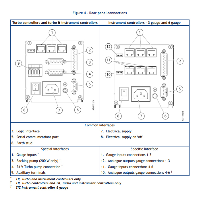 Three TIC Instrument Controllers are available; the three head and six head versions can accomodate 3 or 6 active gauges including the Active Ion Gauge Controller (ebeam version). The six head capman version can accept up to three Edwards Barocel® Capacitance Manometers.