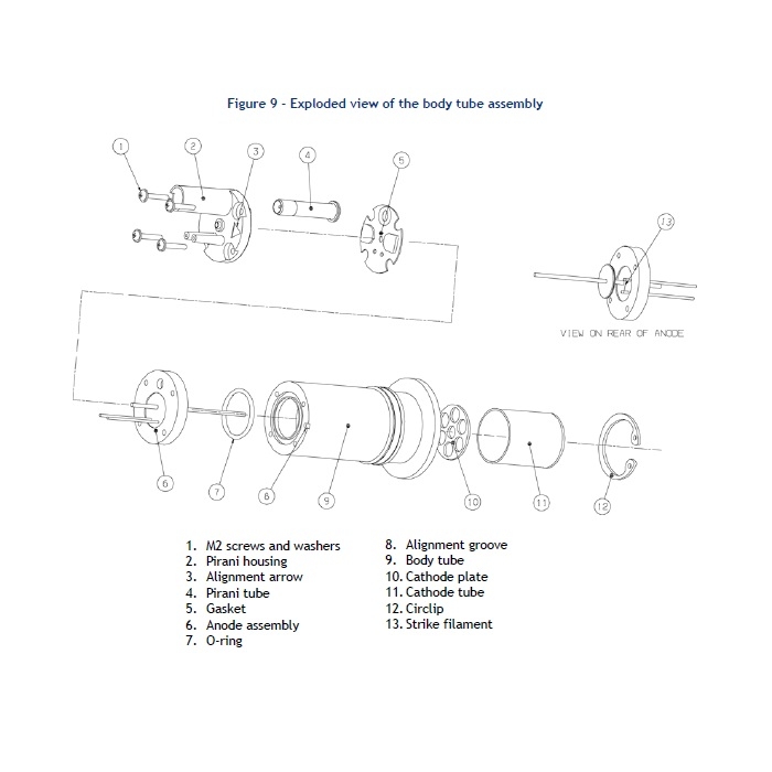 | Materials exposed to vacuum (Both NW and CF versions) | Stainless steel (AISI 304, 316, 321, 347), Fluoroelastomer, soda lime glass, Tungsten, trace of Nickel and Nickel Iron |