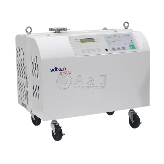 The refurbished Pfeiffer Adixen ASM 182 T is a fully-automatic, multi-purpose helium leak detector. The ASM 182 T system incorporates a 130 L/S hybrid turbomolecular high vacuum pump, with an integrated 16 CFM two-stage rotary vane roughing/backing pump.The Pfeiffer Adixen ASM 182 T leak detector is ideally suited for operations requiring continuously high performance operation and production usage rates.