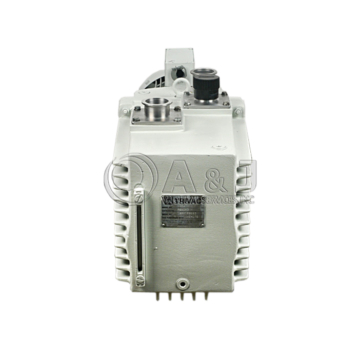Fully refurbished Leybold / Oerlikon D90AC Dual Stage Rotary Vane Pump coupled with a KF40 Inlet Flange and KF40 Outlet Flange. This Leybold / Oerlikon Rotary Vane Pump has a peak pumping velocity of 53.7 cfm and a final pressure of 1 x 10-3 Torr. It has been thoroughly examined and is ready for broad range of applications within the research and industrial industries. The Leybold / Oerlikon D90AC Pump comes with an entire 12-Month Warranty.