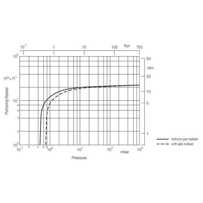 • Pumping speed at 50 Hz: 22.5 m3/h | 13.3 cfm