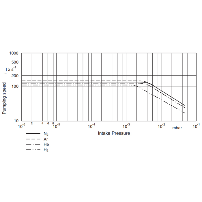 The TURBOVAC model 151C is a turbomolecular pump featuring grease-lubricated bearings. This unit is engineered to pump vacuum chambers down to pressures in the high-vacuum range. A TURBOTRONIK frequency converter and a forevacuum pump are required for the operation of the TURBOVAC.