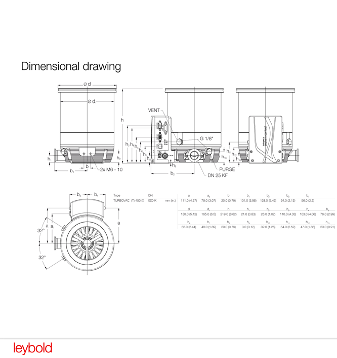 With the Leybold Turbovac 450 iX, high functionality meets outstanding performance. Our Model 450 iX turbomolecular pump range with an integrated vacuum system controller provides many features that have, until now, been available only within costly external control units. With the new Leybold Turbovac 450 iX, valuable accessories including forevacuum pumps, gauges, coolers, valves, and many other varieties of accessories can now be easily controlled via the turbo pump.