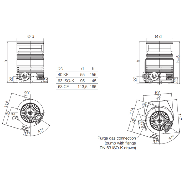 The TURBO.DRIVE may be installed beside or underneath the pump or up to 5 m away. The pumps are equipped with a purge gas facility.