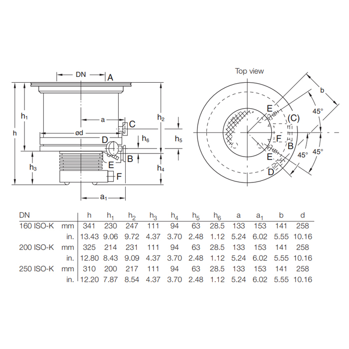 - Inlet flange DN 250 ISO-K