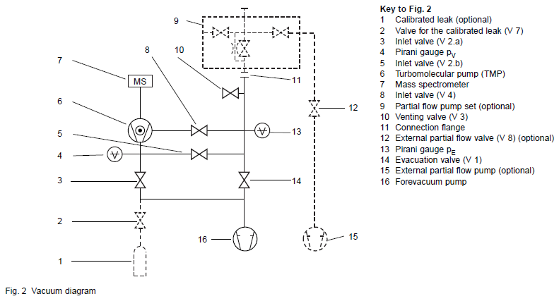 The UL 200 is capable of detecting and quantifying helium test gas flowing into a test sample having a leak by means of selective mass spectometer. It's operation is based on the counter flow principle, i.e. inflowing helium diffuses against the gas flow being pumped by the turbomolecular pump into the mass spectometerwhereas heavier gases are held back.