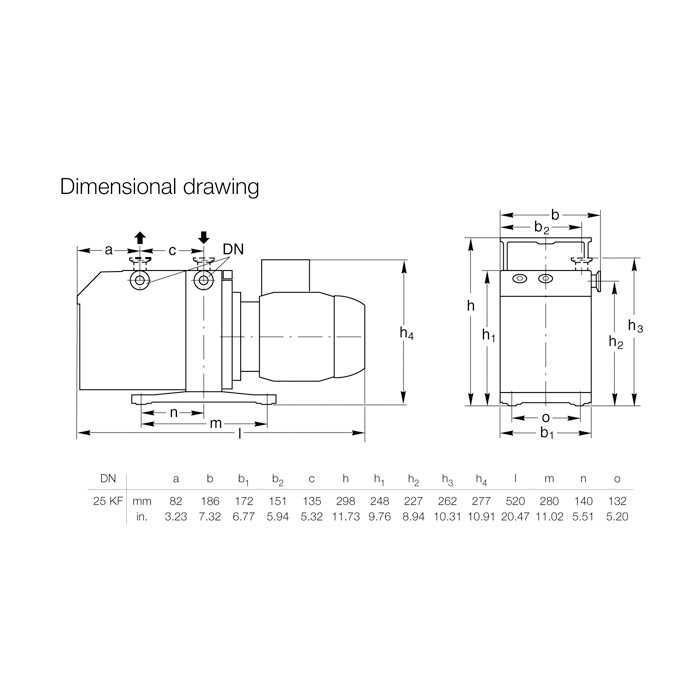 The drive motor of the Trivac B is directly flanged to the pump at the coupling housing. The pump and motor shafts are directly connected by a flexible coupling. The bearing points of the pump module are force lubricated sliding bearings. All controls as well as the oil-level glass and the nameplate are arranged on the front. All connections are to be found at the sides of the pump. The oil-level glass is provided with prisms for better observation of the oil level.