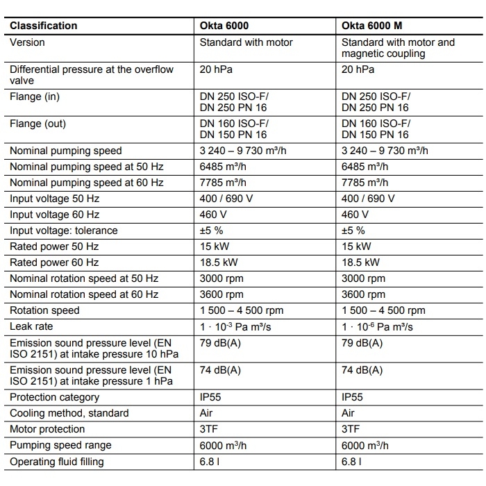 - Nominal pumping speed: 6075 m3/h