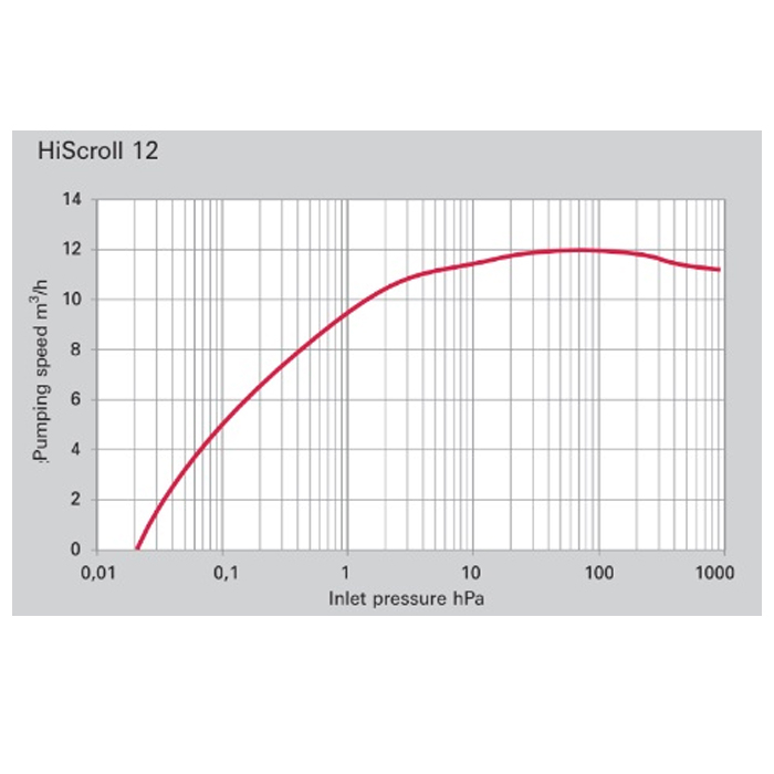 The Pfeiffer HiScroll 12 is from the newest generation of completely oil free, dry scroll pumps. The HiScroll pumps have IPM (Interior Permanent Magnet) synchronus motors that achieve greater efficiency of up to 15% compared to conventional drive pumps. This translates to lower temperatures at maximum performance through reduced heat generation and minimal cooling requirements. The HiScroll 12 is ideal for compact systems and environments where cooling efficiency is important.