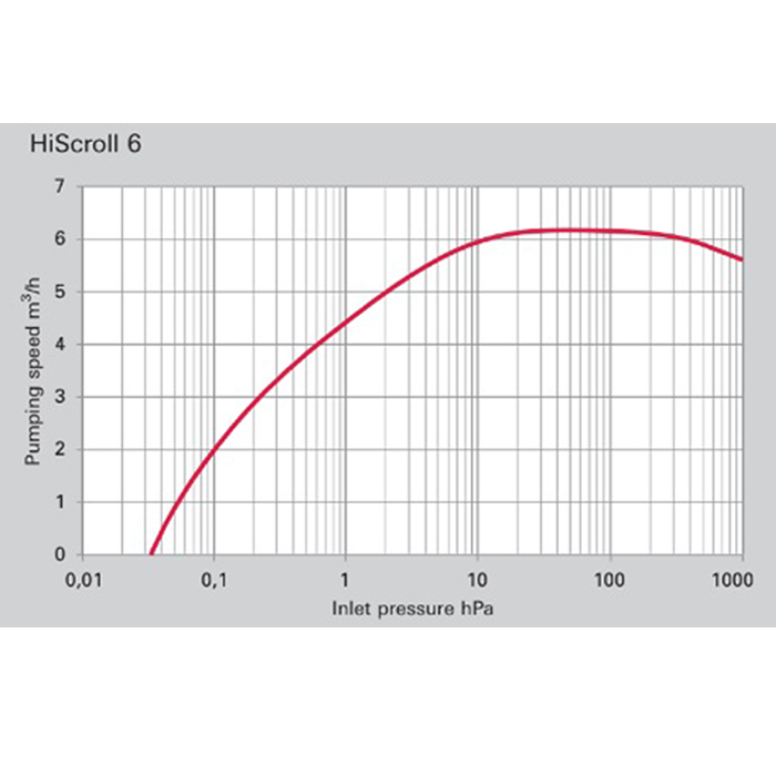 The Pfeiffer HiScroll 6 is from the newest generation of completely oil free, dry scroll pumps. The HiScroll pumps have IPM (Interior Permanent Magnet) synchronus motors that achieve greater efficiency of up to 15% compared to conventional drive pumps. This translates to lower temperatures at maximum performance through reduced heat generation and minimal cooling requirements. The HiScroll 6 is ideal for compact systems and environments where cooling efficiency is important.