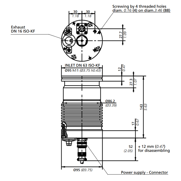 The Pfeiffer Adixen MDP5011 Turbo Pump cooling fan operates on 12 Volts DC supplied directlly from turbo pump controller.