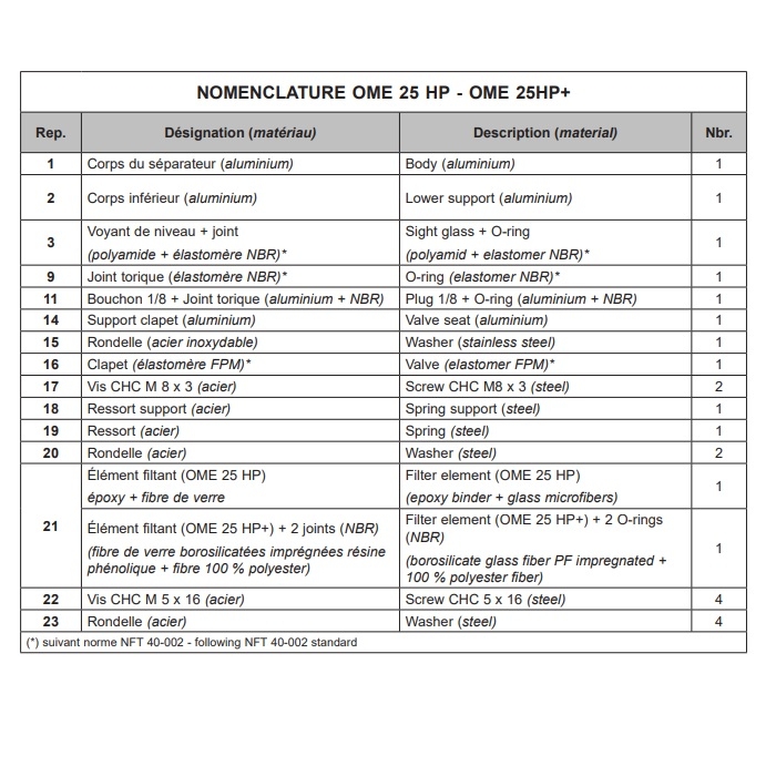 Oil mist eliminators retain oil mist contained in the exhausted gases with a high level of separation; an internal over pressure valve prevents exceeding the maximum permissible exhaust pressure.