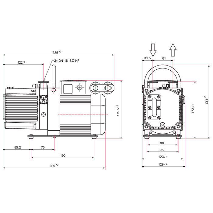| Ultimate pressure without gas ballast | 3 · 10-3 hPa | 2.25 · 10-3Torr | 3 · 10-3 mbar |