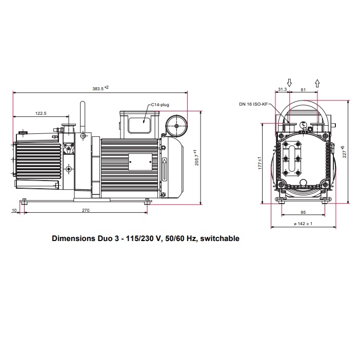 | Ultimate pressure without gas ballast | 3 · 10-3 hPa | 2.25 · 10-3Torr | 3 · 10-3 mbar |