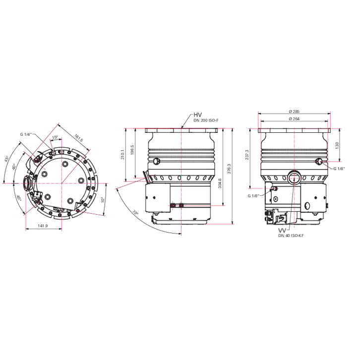 | Mounting orientation | 0° (HV flange top) - 90° |