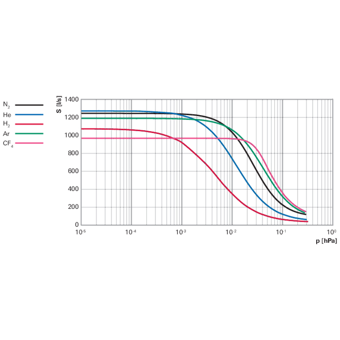 | Gas throughput at 0.1 hPa HV for Ar | 26 hPa·l/s |