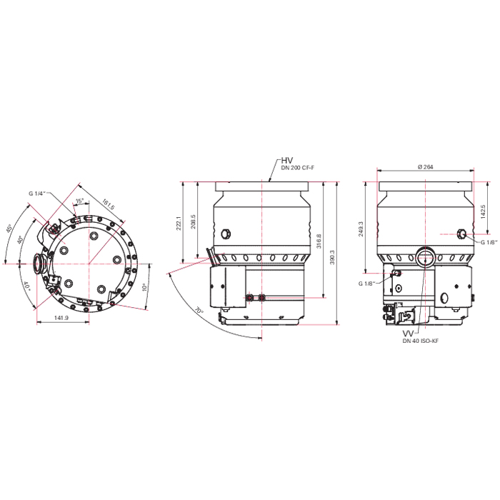| Mounting orientation | 0° (HV flange top) - 90° |