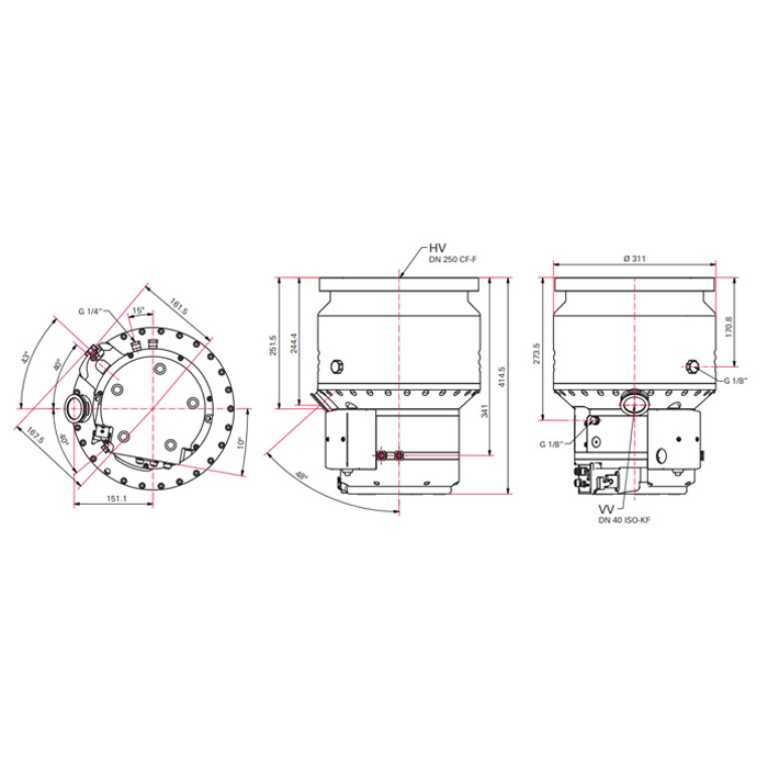 - Outlet Flange: DN 40 ISO-KF