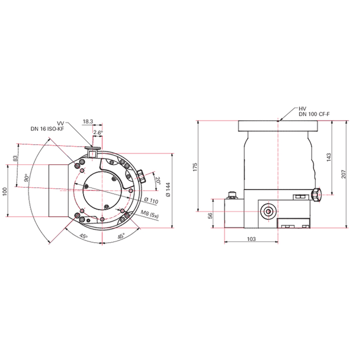 | Flange (out) | DN 16 ISO-KF/G ¼" |