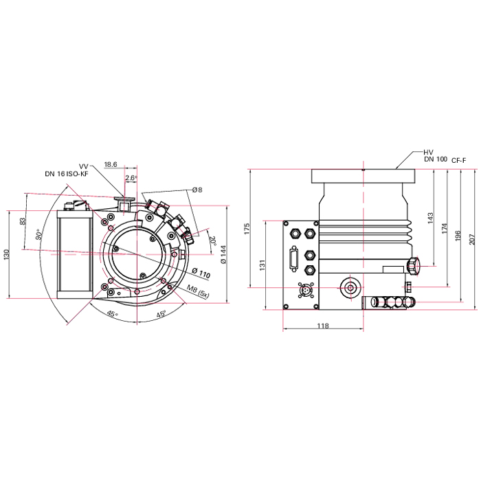 | Connection flange (out) | DN 16 ISO-KF | G ¼" |