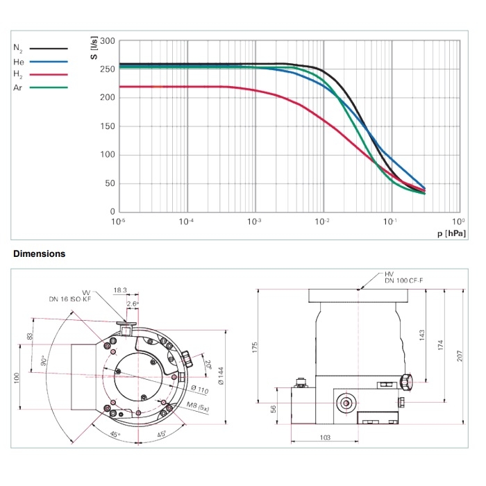 | Pumping speed for Ar | 255 l/s |