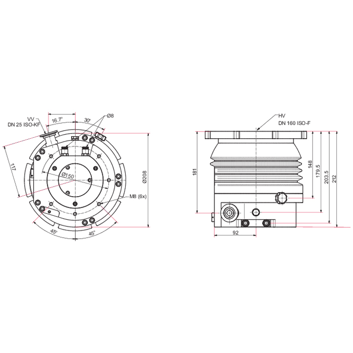 | Connection flange | DN 160 ISO-F / DN 25 ISO-KF | G 1/4" Thread |