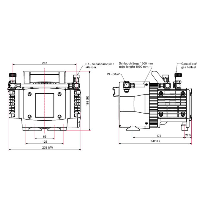 Ultimate pressure with gas ballast 5 hPa | 3.75 Torr | 5 mbar