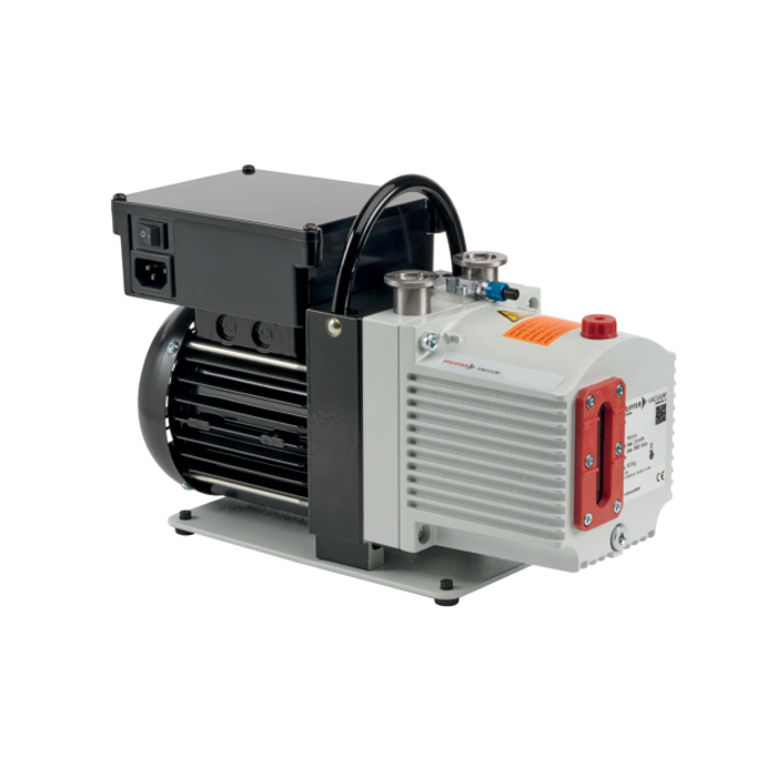 These rotary vane pumps are also equipped with a vacuum safety valve, which isolates the pump from the vacuum chamber during intentional or unintentional shutdowns. It vents the pumping system using displaced gas to prevent oil from backstreaming into the vacuum chamber. Upon startup, the valve opens after a short delay.