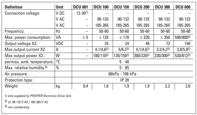 Pfeiffer DCU600 Technical Data: