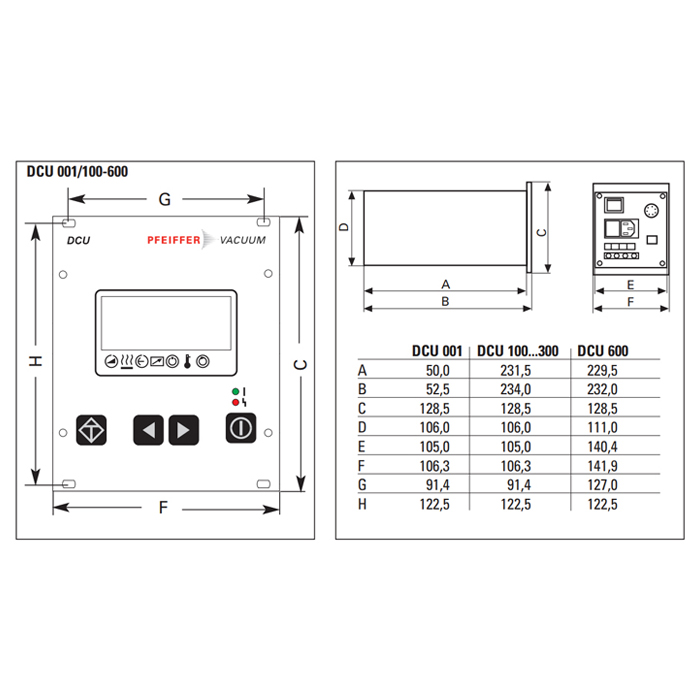 Display control unit, incl. power supply is used for the voltage supply of the CompactTurbo molecular pumps TPH /U 1201/1501/1801/2301 with integrated electronic drive unit TC 750. - The connecting cable "RS 485" DCU /TC (3 m) is included. Mains requirement: voltage (range): 90 - 132 / 185 - 265 V AC, Power consumption: 900 VA. The Pump connecting cable DCU /TC and Mains Cables are not included.