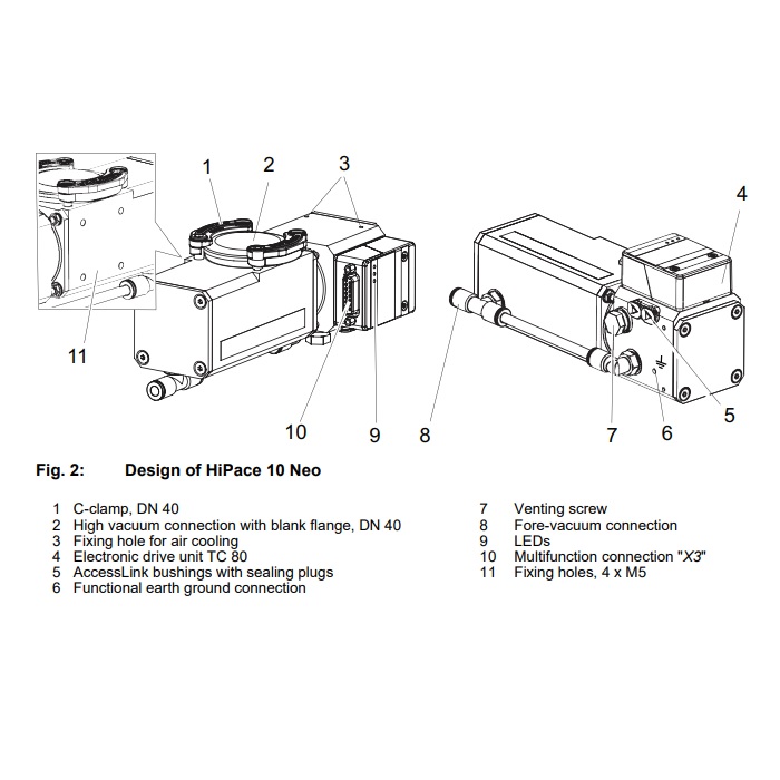 The Pfeiffer HiPace 10 Neo turbo pump is the latest line of turbo pumps. The new generation TC 80 electronic turbo drive unit is a permanent component of the turbo pump. The purpose of the electronic drive unit is to drive, monitor and control the entire turbo pump. The Pfeiffer Vacuum HiPace 10 Neo Turbo Pump models are cost-effective and offer flexible installation within any orientation. The proven bearing system of the HiPace 10 Neo provides unrivaled dependability, while the sophisticated rotor design of the pump enables superior pumping speeds, greater backing pump compatibility, higher gas throughputs, and enables the compression of light gasses.