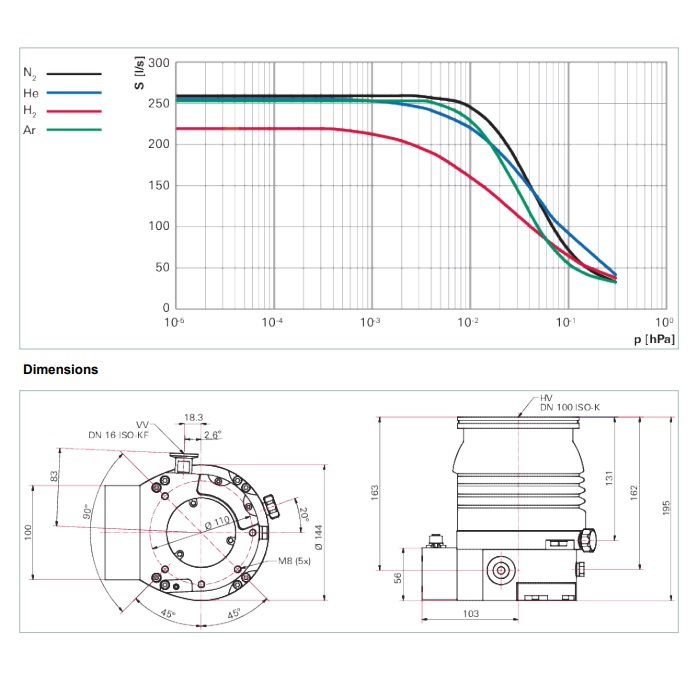 | Pumping speed for Ar | 255 l/s |