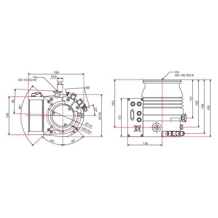 - Outlet Flange: DN 16 ISO-KF / G 1/4"