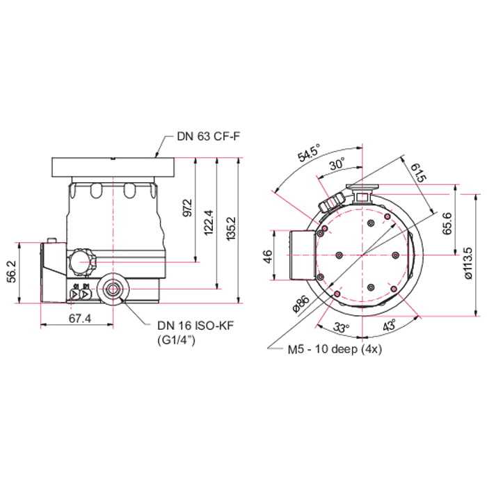 | Flange (out) | DN 16 ISO-KF/G ¼" |